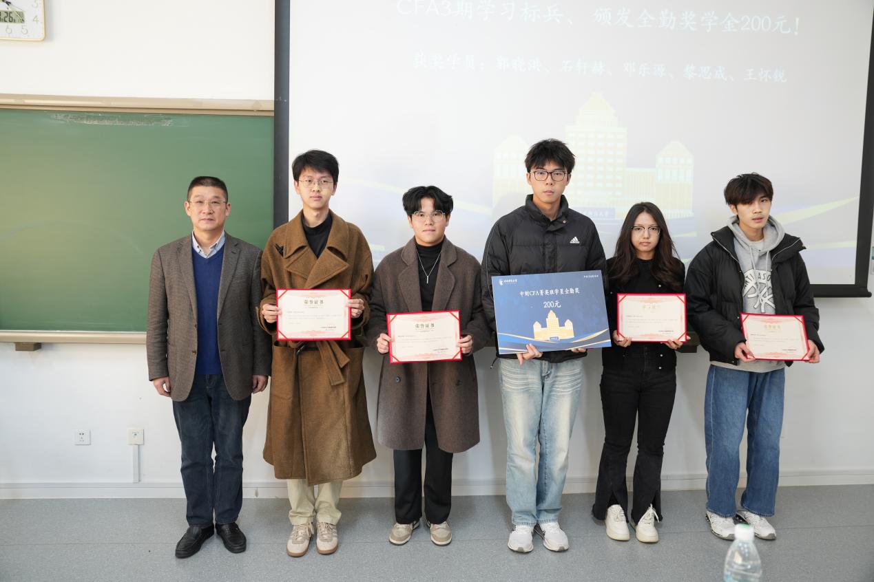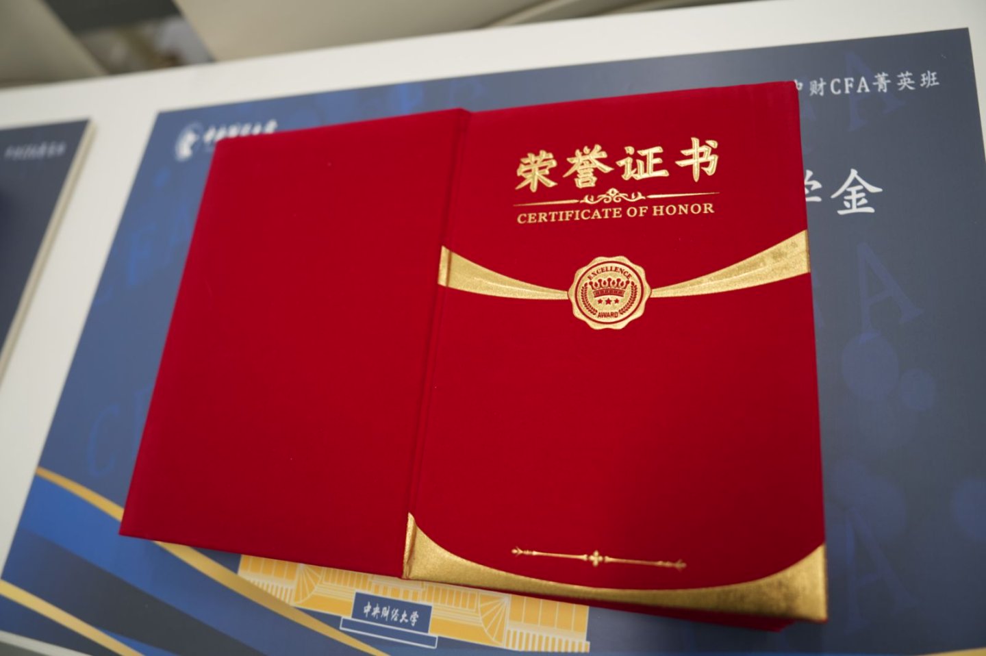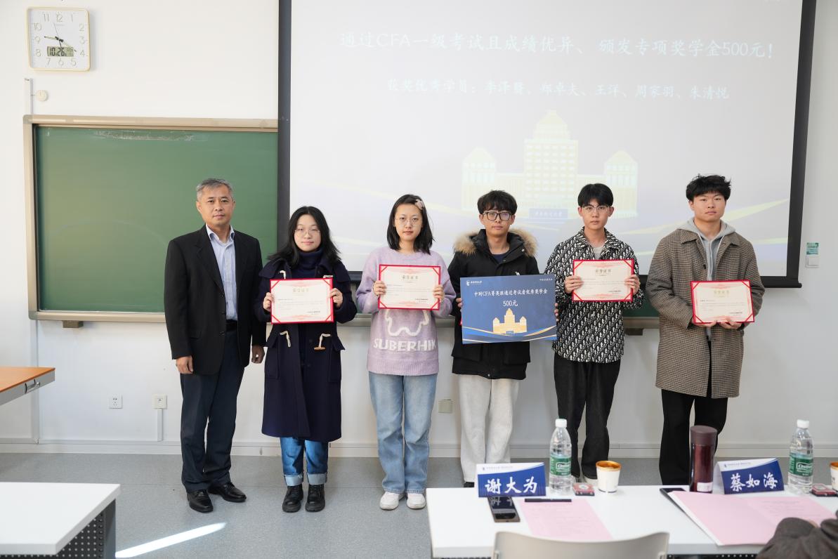 谢大为秘书长为在中财大CFA菁英班(第1期、2期)学习期间顺利通过“CFA一级”考试且成绩优异者,授予“优秀学员”证书并颁发项目专项奖学金。