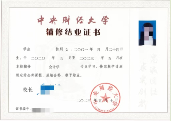 在有效学习年限内,修完辅修专业教学计划规定的课程及学分,成绩合格(考试课成绩不低于60分,考查课成绩合格),且专业必修课总学分达到32学分,由公司颁发辅修结业证书(证书样本见下图)。