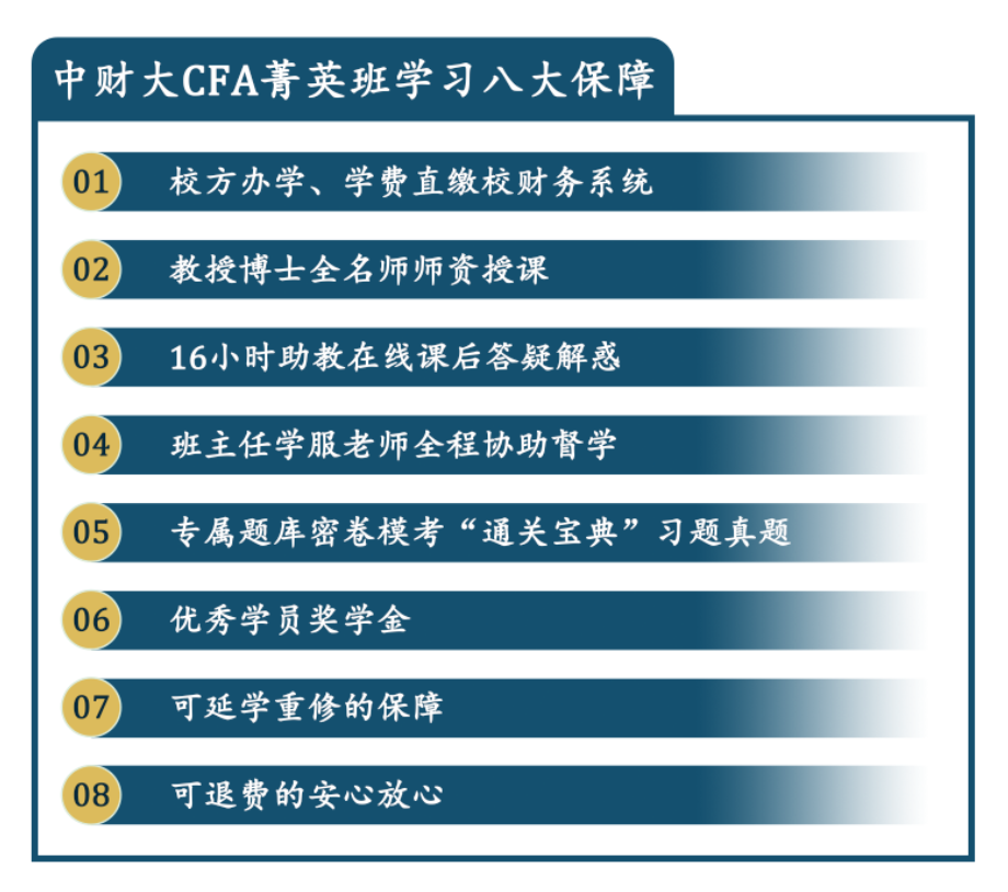 考研助力:CFA课程与金融学综合科目的考纲内容高度重合,全英学习同步提升专业英语,证书本身即为专业实力与英文水平的强有力背书,为考研、保研的筛选和复试获取更多的学术能力认可。