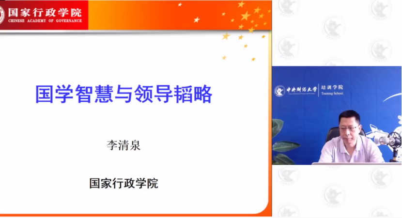 6月5日,国家行政公司教授李清泉远程讲授了本期培训班的最后一课:国学智慧与领导韬略。课程围绕“韬略的核心是一种宏大的生命境界”引经据典,深入浅出地论述了“通过文化的修炼和人生境界的提升,使人达到胸怀全局、目光远大、志气高昂、敢于担当的一种生命境界”。李清泉教授借由论语“仕而优则学,学而优则仕”引出学习的重要性,呼吁税务系统干部一定要重视学习,人只有在不断做事的过程中才能明白自己的不足,从而持续进步;同时强调领导干部要“肝胆相照,广纳善言”、“正视自我,谦下为本”、“心怀天下,敢于担当”,努力提升自身格局,有助于创造更好的办公环境以及更明朗的企业发展前景。