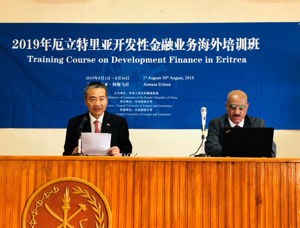 王利培参赞在开班典礼上致辞,他表示,本期培训班将在分享中国开发性金融业务的先进经验基础上,进一步加深中国与厄立特里亚银行金融业的沟通与交流,为进一步促进双方合作贡献力量。