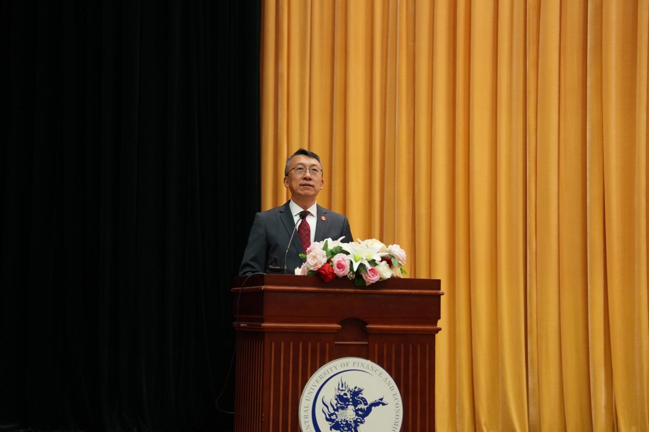 2025级专升本金融学李意清作为新生代表发言。他分享了自己的求学感悟和心路历程。怀着对知识的渴望、对大学的向往,他最终选择了在中财大继续深造,并表示将倍加珍惜学习机会,平衡好工作、生活和学业之间的多重压力,以坚定的信念和毅力,充分汲取知识的养分,努力达成求学目标,真正走好这条充满挑战和机遇的求学之路。