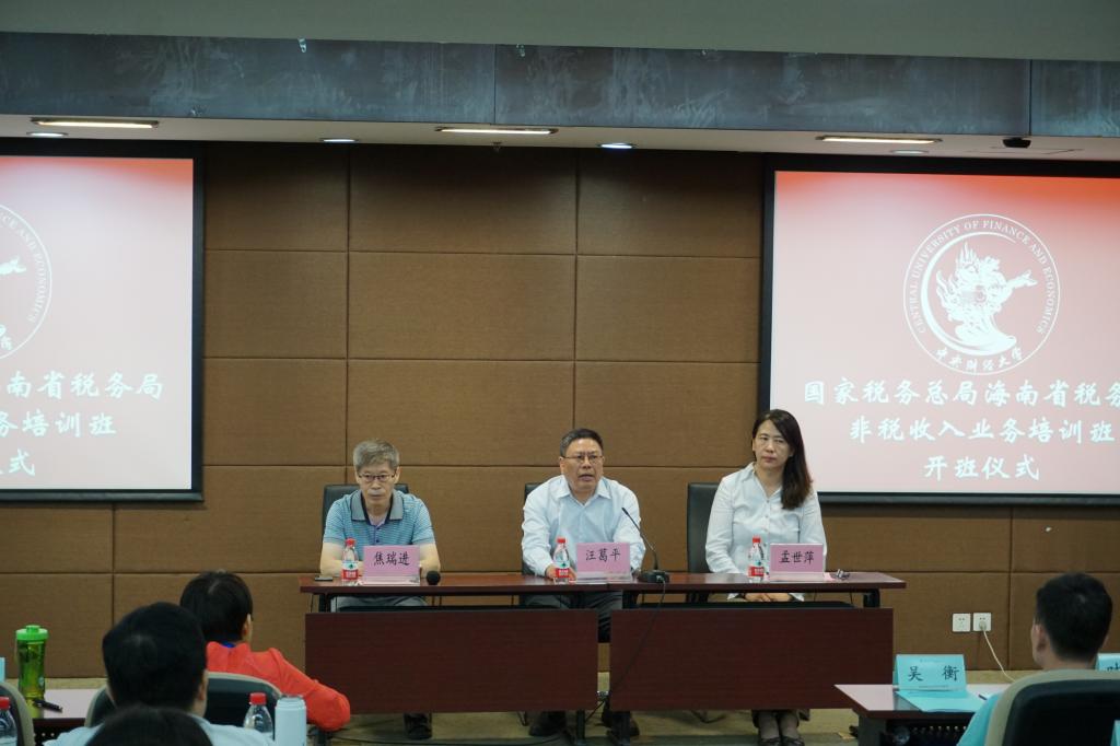 9月16日上午,开班仪式在中财大厦二层报告厅举行,国家税务总局海南省税务局党委委员、副局长汪葛平,中国税务学会学术委员会副秘书长焦瑞进,MS88官方网站培训公司市场开发与对外合作部主任孟世萍出席开班仪式并致辞。