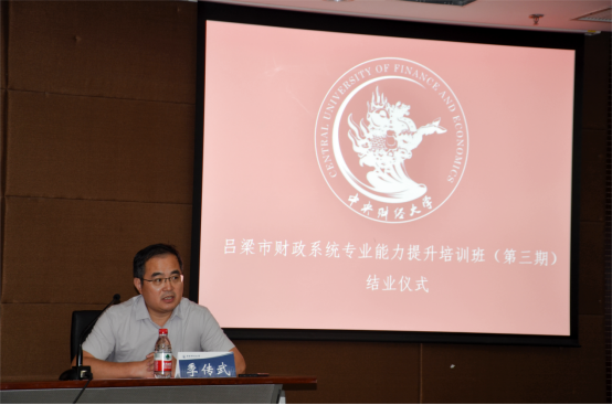 7月28日下午,由吕梁市财政局主办,M88mansion体育承办的“吕梁市财政系统专业能力提升培训班(第三期)”结业仪式在中财大厦二层报告厅顺利举行。吕梁市财政局党组成员、财政预算审核中心主任梁学工,M88mansion体育副经理季传武出席,吕梁市财政局58位学员参加。仪式由M88mansion体育国内业务部主任刘艳萍主持。