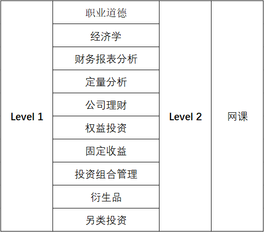 金融知识体系完善:CFA考试分三个级别,每个级别包含十个金融学习科目,内容涵盖了所有金融行业需要的专业知识,被誉为金融界的MBA。