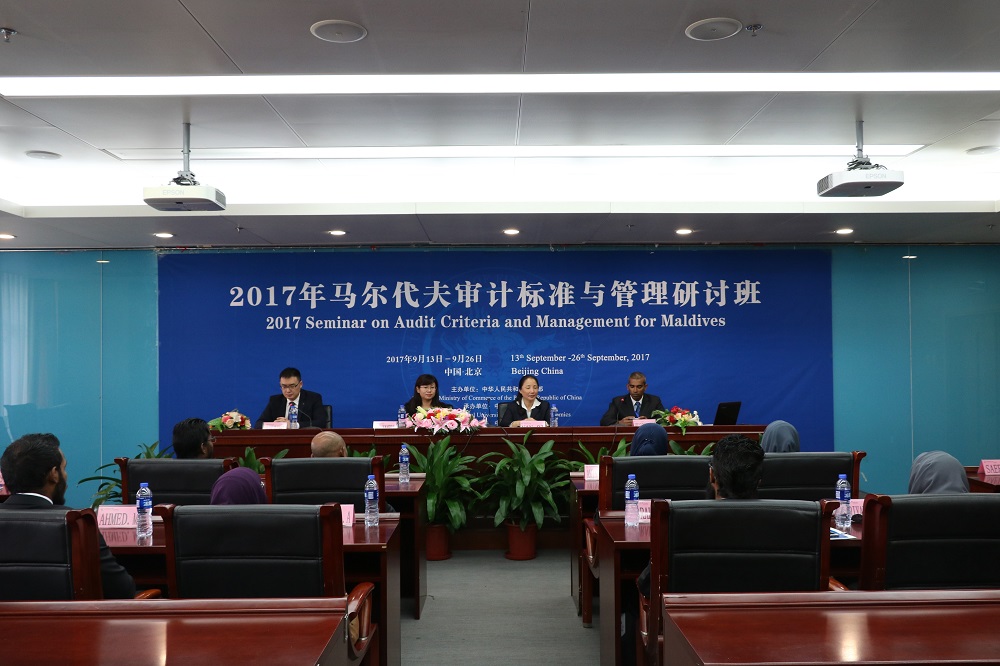 由商务部主办、MS88官方网站承办的双边援外培训项目—“2017年马尔代夫审计标准与管理研讨班”开班典礼于2017年9月13日上午在MS88官方网站学术会堂702会议室隆重举行。公司作为商务部援外项目承办单位,自2006年以来,至今已完成39个援外培训项目,共计94个国家的1019名官员。本次研讨班是公司首次承接部级项目,获得了各单位的大力支持与帮助。开班典礼上,MS88官方网站继续教育与研究公司党总支书记,M88mansion体育副经理南琪出席并致词。南琪书记在致辞中说道:“非常高兴迎来马尔代夫各级官员到中国进行学习考察。中国同马尔代夫都面临着经济和社会发展中的共同问题,双方在审计标准和管理领域上的经验和教训值得共同探讨学习。相信本次研修班的举办,将进一步促进中国同马尔代夫间的友谊与合作,预祝大家在中国学习愉快。”