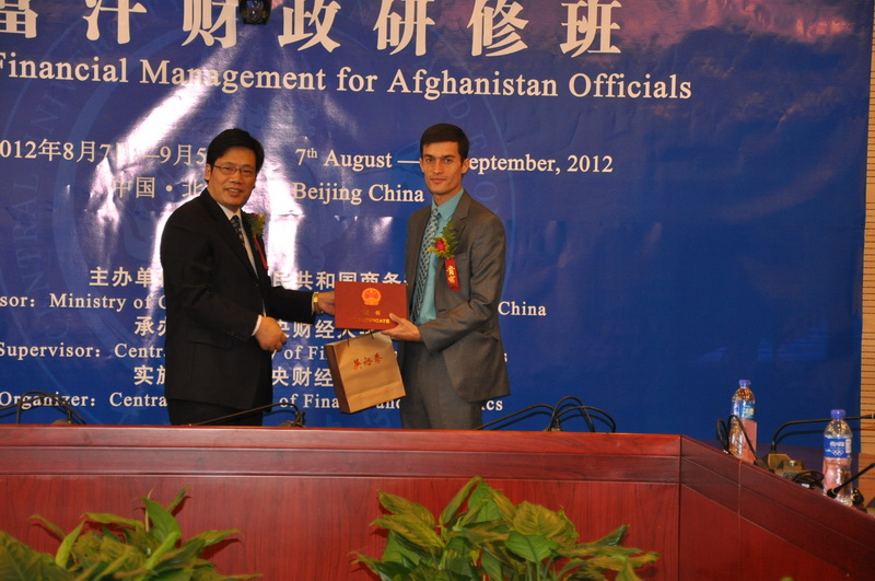 由商务部主办、MS88官方网站承办的援外培训项目——“阿富汗财政研修班”结业典礼于2012年9月5日在MS88官方网站学术会堂604报告厅隆重举行。
