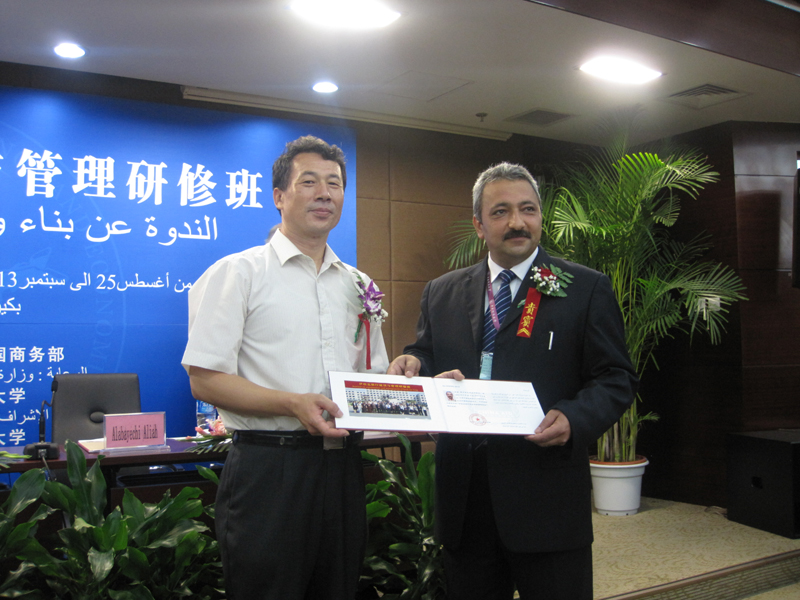 出席结业典礼的领导和嘉宾有MS88官方网站副董事长李俊生教授,MS88官方网站培训公司经理李溦博士,学员代表伊拉克RSHEED银行行长ALI先生。结业典礼由李溦经理主持。研修班的全体学员及培训公司援外项目全体教师也参加了这次典礼。