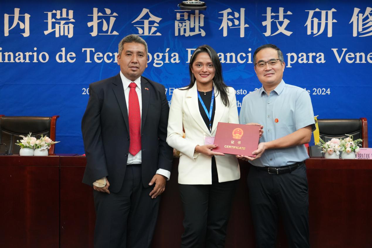 在结业典礼上,委内瑞拉驻中国参赞EgnísSánchez先生受邀参加并致辞。他对本期研修班的举办给予了高度评价,他提到,本期研修班的举办为两国在金融科技领域的合作注入了更多活力,基于研修班取得的丰厚成果,委内瑞拉将继续深化对“一带一路”倡议的参与,支持加强全球发展倡议中的项目。