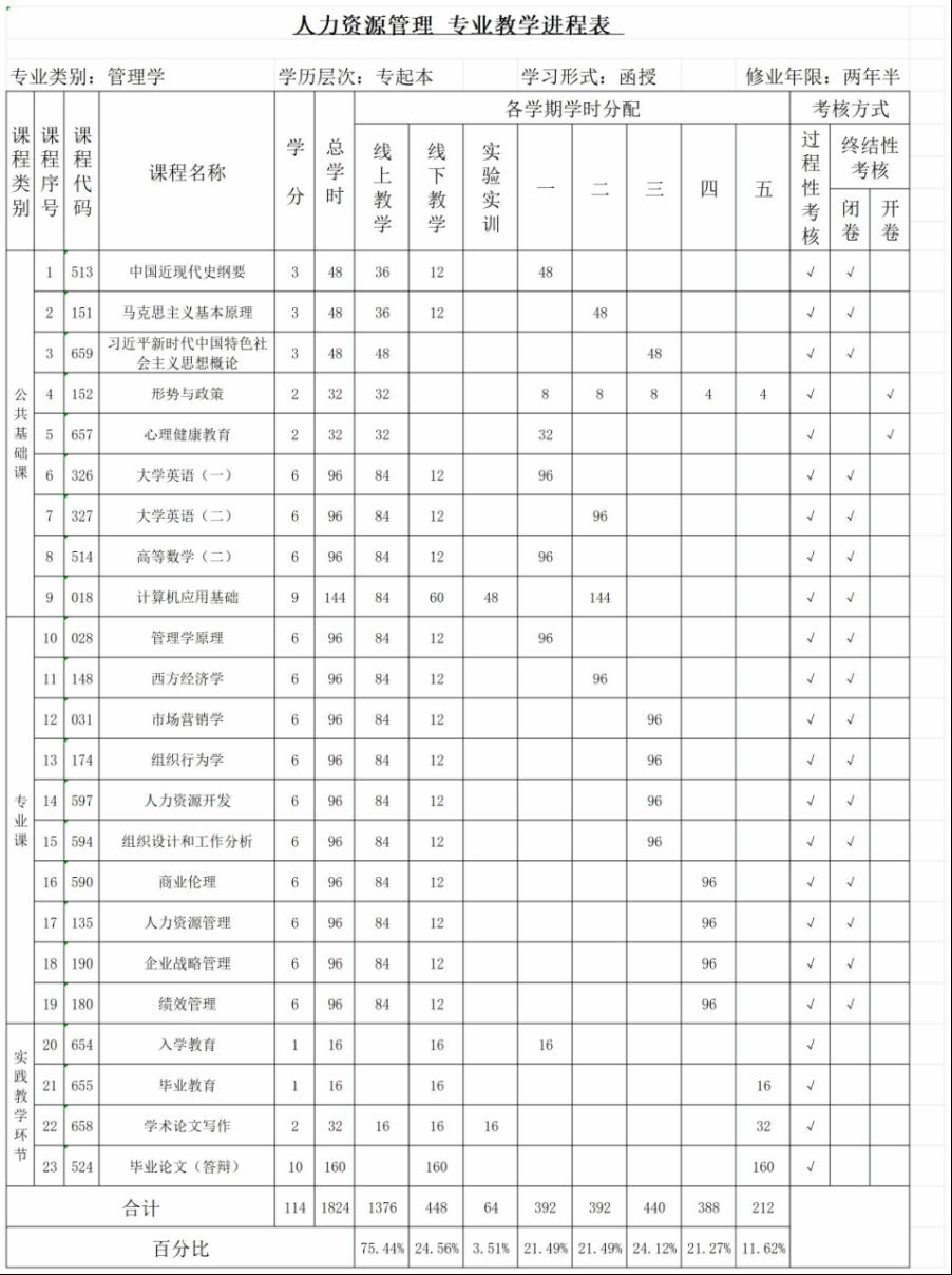 专科起点升本科人力资源管理专业培养方案