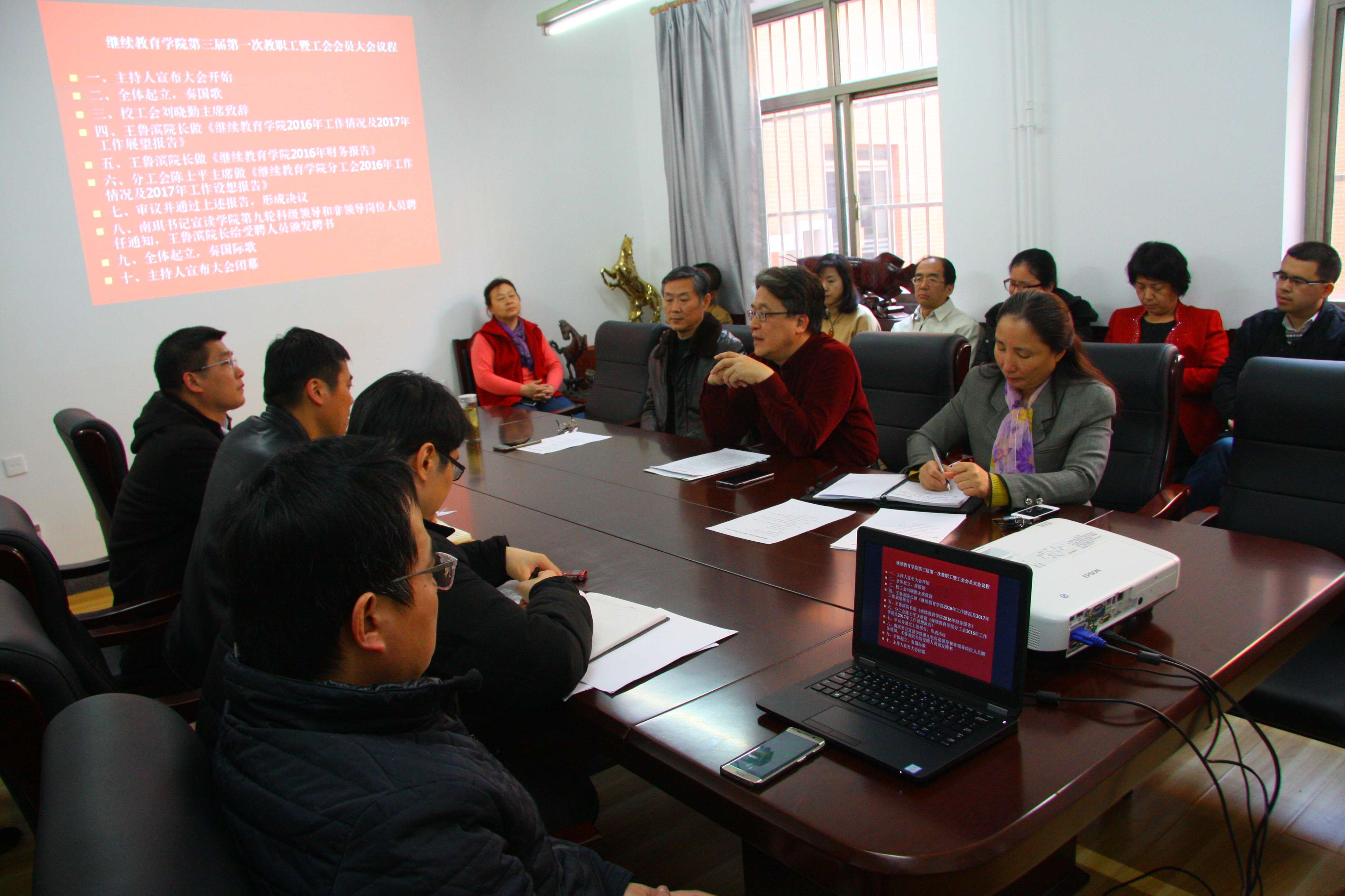 2017年3月3日下午,M88mansion体育第三届第一次教职工暨工会会员大会在公司南路校区图书馆配楼104会议室隆重召开。会议由M88mansion体育副经理赵凡主持,经理王鲁滨、书记南琪、副经理陈士平、蔡如海及公司全体教职工参加了会议。校工会常务副主席刘晓勤受邀为大会致辞。